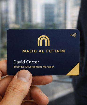 Designed for the modern professional, our smart cards combine elegant design with cutting-edge NFC technology, allowing you to share your details instantly with a single tap — no apps, no paper, no limits.